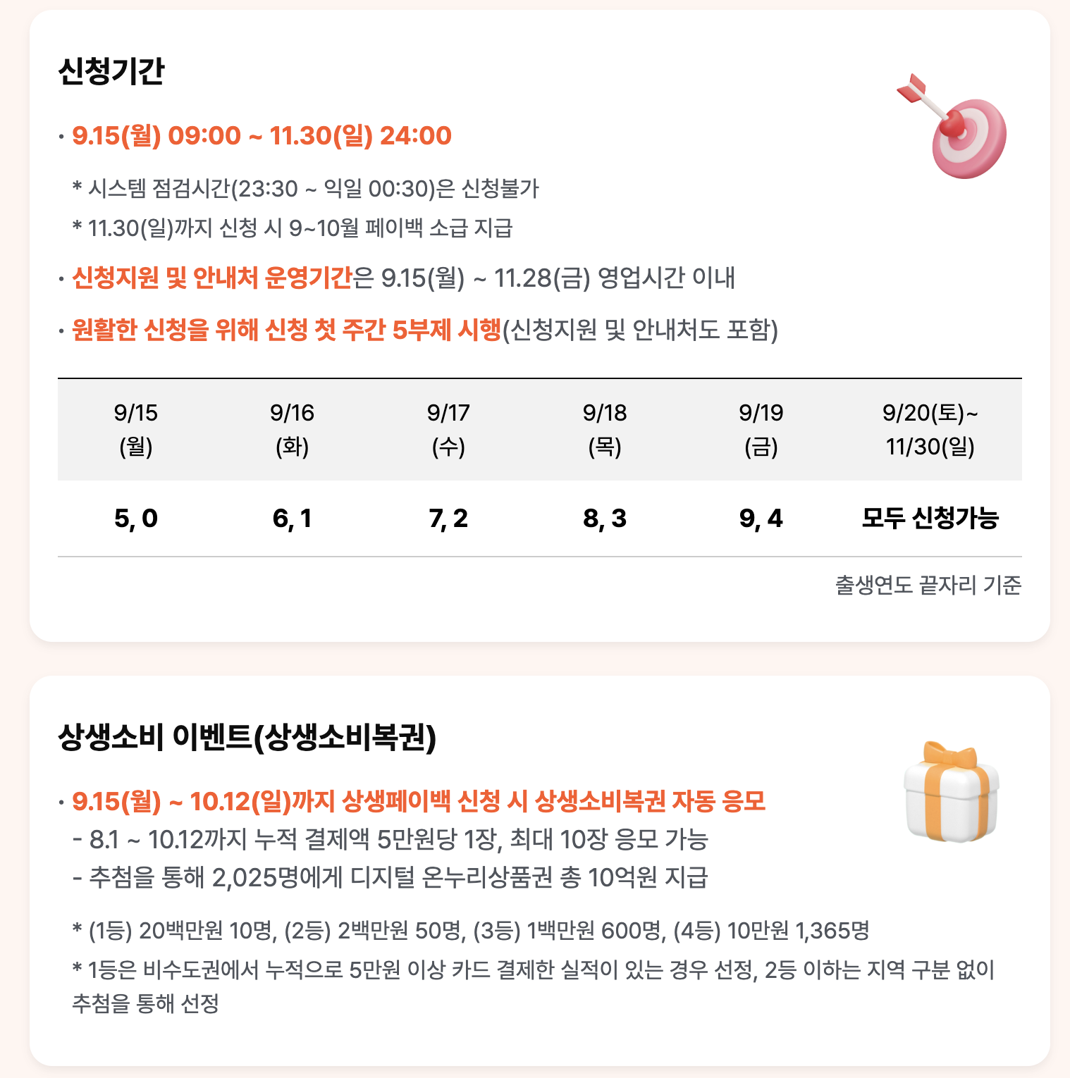 | 신청 방법 | 상생페이백 공식 누리집에서 신청 (첫 주 5부제 시행) |
